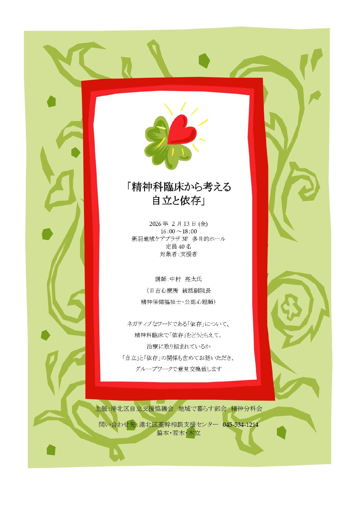 令和8年1月30日(金)13:30~15:30 @横浜市総合保健医療センター 4F講堂